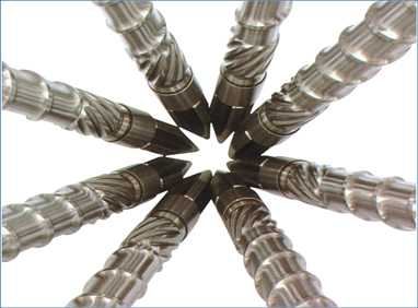 東莞市華鴻塑料機械長除了在制造無鹵螺桿上有顯著的成效外,工程技術人員又結合中國傳統工藝,研發出無鹵螺桿的翻新修復工藝,該工藝嚴格控制了工件變形等問題,修復后的無鹵螺桿與新螺桿幾乎沒有差別。料筒則采用鏜磨內孔或鑲套。修復后,整機中的塑化參數不需要做任何修改,其使用壽命大大高于你所采購的常規材料部件。